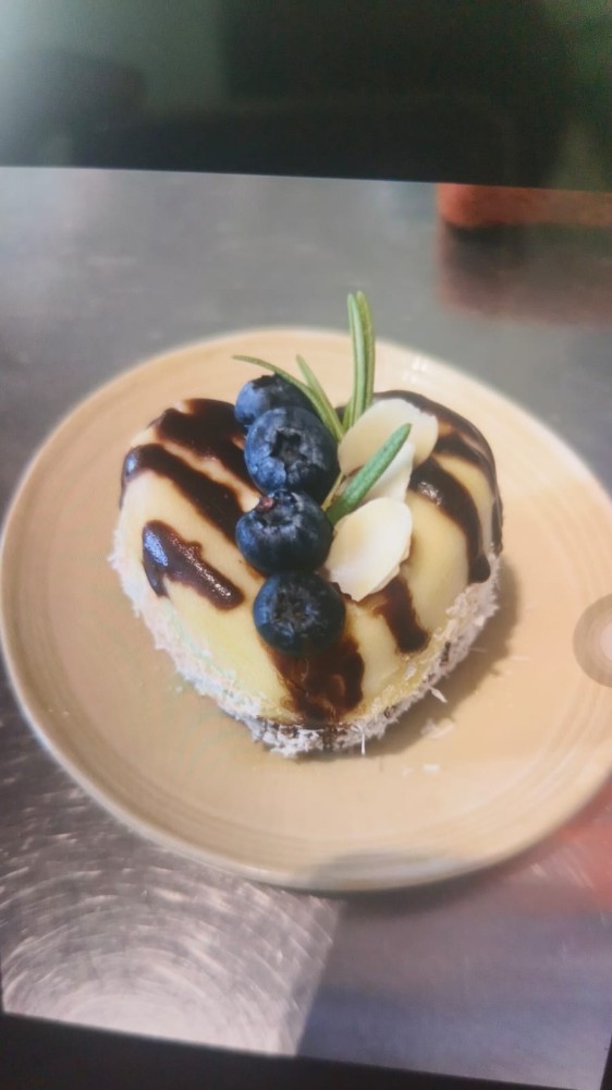 Vegan, gluten free. Almond flour, oat flour, coconut sugar, mix berries, coconut milk, coconut oil